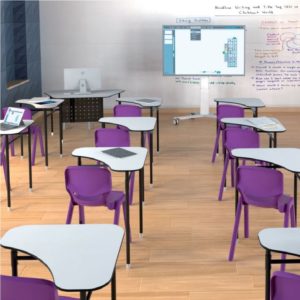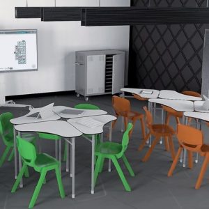 Desk21 s’adapte à toutes les configurations possibles : configuration « salle de classe » pour élèves droitiers ou gauchers, configuration « travail de groupe » pour accroître les interactions entre les élèves ainsi que de multiples autres configurations possibles et imaginables. Le set est composé de tables et chaises légères, faciles à manipuler et durables. En un rien de temps, la configuration des tables peut être modifié. L’ensemble Desk21 comprend également un bureau pour le professeur. Enfin, cet ensemble peut également être équipé avec un tableau interactif « Netboard ».