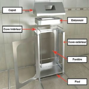 Les poubelles Purclaire, conçus en acier et en verre acrylique, permettent notamment une personnalisation sans limites, au niveau de la forme des poubelles, des dimensions, ouvertures et de l’étiquetage. Les poubelles sont combinés avec un système d’ancrage pour former un ecopoint, composé d’une série de poubelles individuelles.