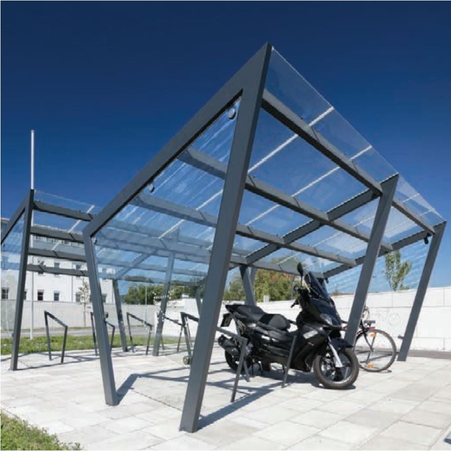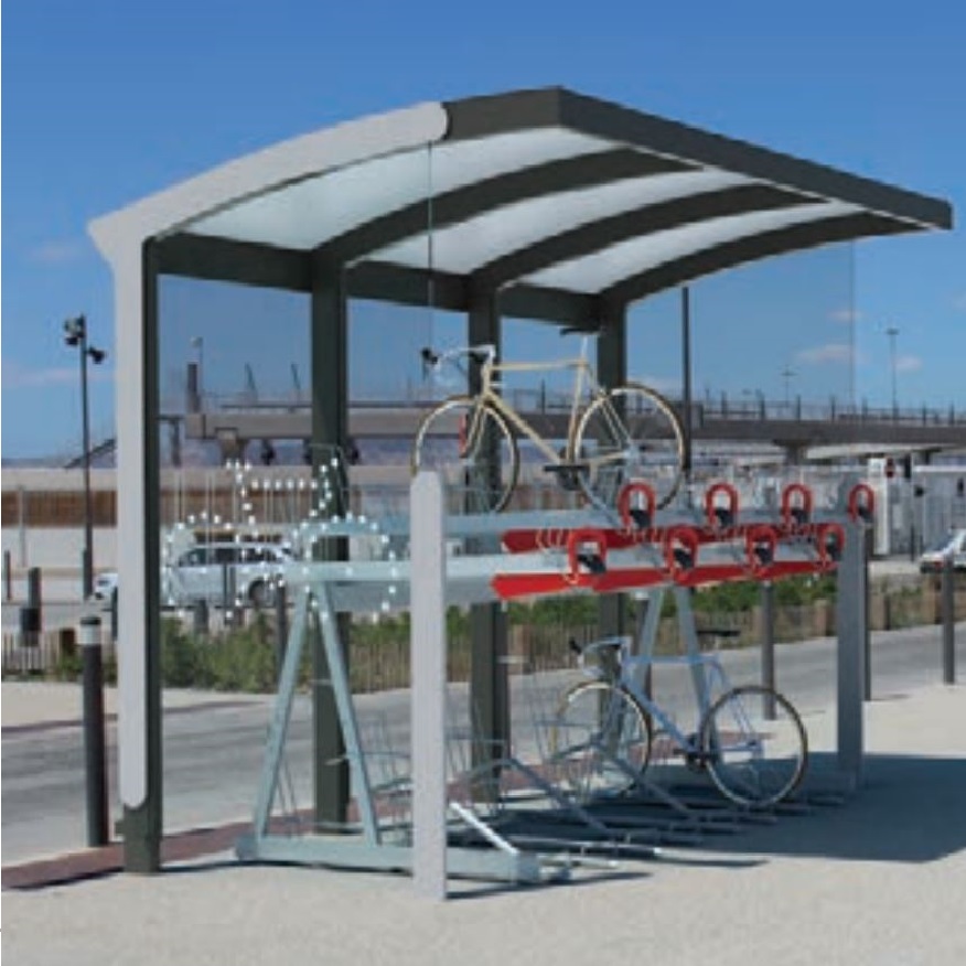 | Customizanble bike shelter | Urban bike shelter with 2 levels | Large bike shelter |